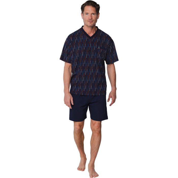 De Robson heren shortama (artikelnummer 132261-808-1) is een klassieke, korte pyjamaset die bekendstaat om zijn comfortabele pasvorm en traditionele uitstraling.